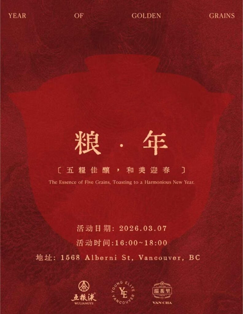 3月7日,一场融合中国白酒、茶艺与传统艺术的文化雅集 “粮·年——五粮液以茶会艺” 活动在加拿大温哥华举行。本次活动由汉嘉酒业携手五粮液,与Young Elite Vancouver(YE)与文化品牌温茶里(Van Cha)联合举办,在温哥华海景私宅举办了一场高端私享文化聚会。